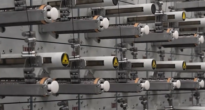 预氧化在内部温度200℃到300℃之间的氧化炉中进行,最考验火候的把控。就像煎3分熟的牛排,先用温火慢煎,里面既不能太生,表面也不能太焦。它的作用是让原丝更耐热,在后面的高温碳化过程中不会熔断。