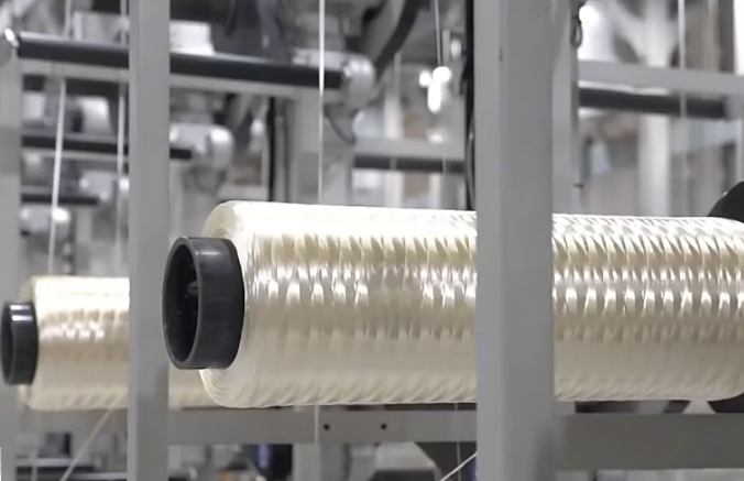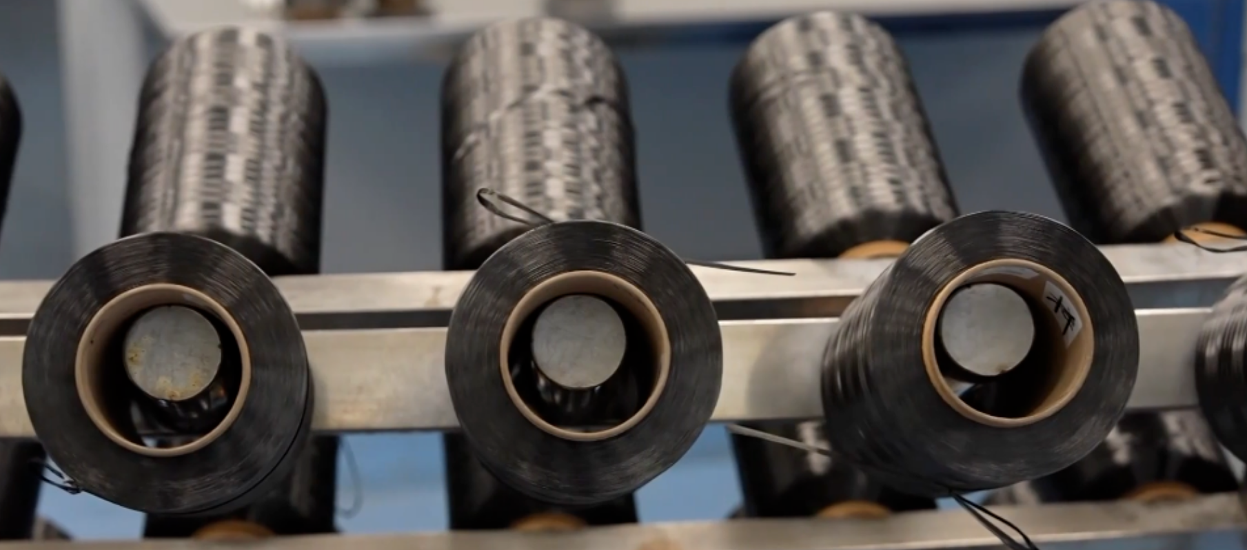 碳纤维的生产线看起来像一个纺织车间,一排排白色的柱体就是碳纤维的原丝。