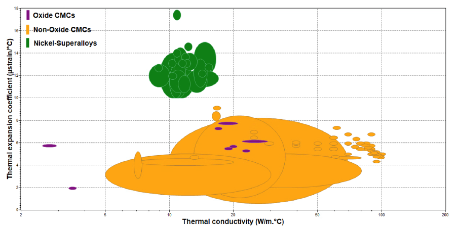 图 11:现有陶瓷基复合材料的热膨胀系数与热导率的比较
