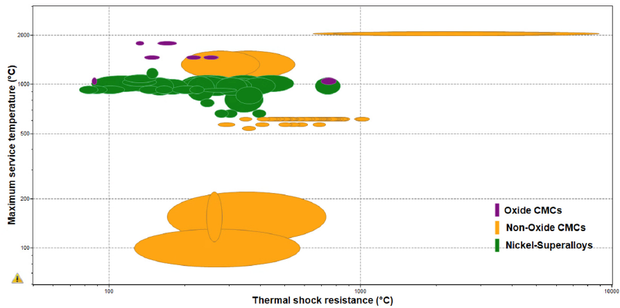 图 13:现有陶瓷基复合材料的最高使用温度与热震抗性的比较